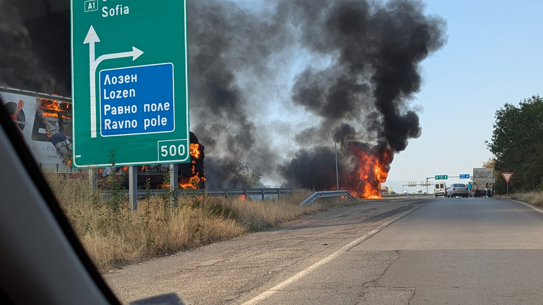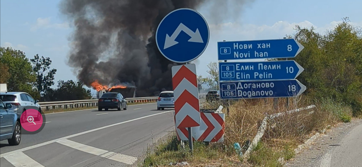 Два камиона горят в този миг на автомагистрала „ Тракия “. Превозните средства са се възпламенили на 10 километър в посока София.