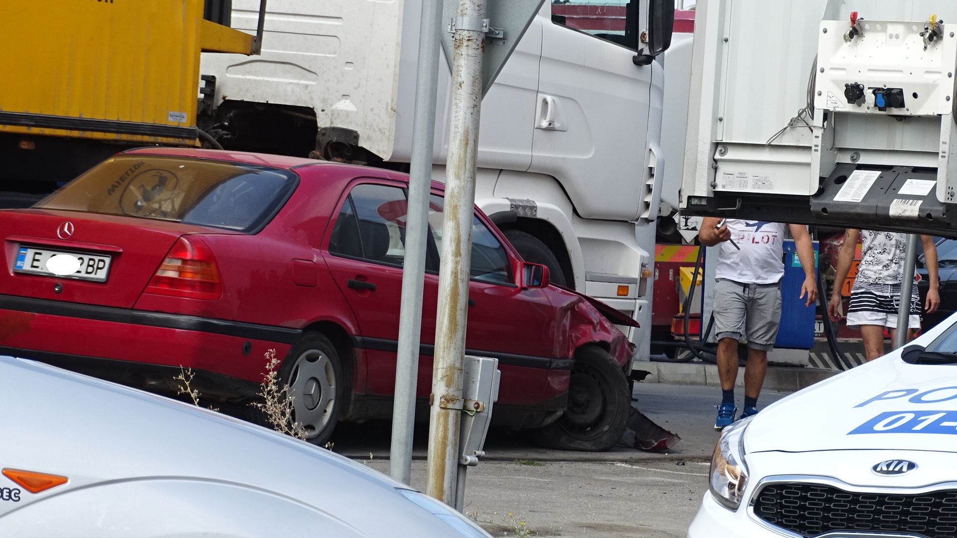 Лек автомобил се вряза в зареждащ гориво тир на бензиностанцията на „ Покровнишко шосе “ в Благоевград. Колата влиза в бензиностанцията, откакто е засечена от различен лек автомобил.