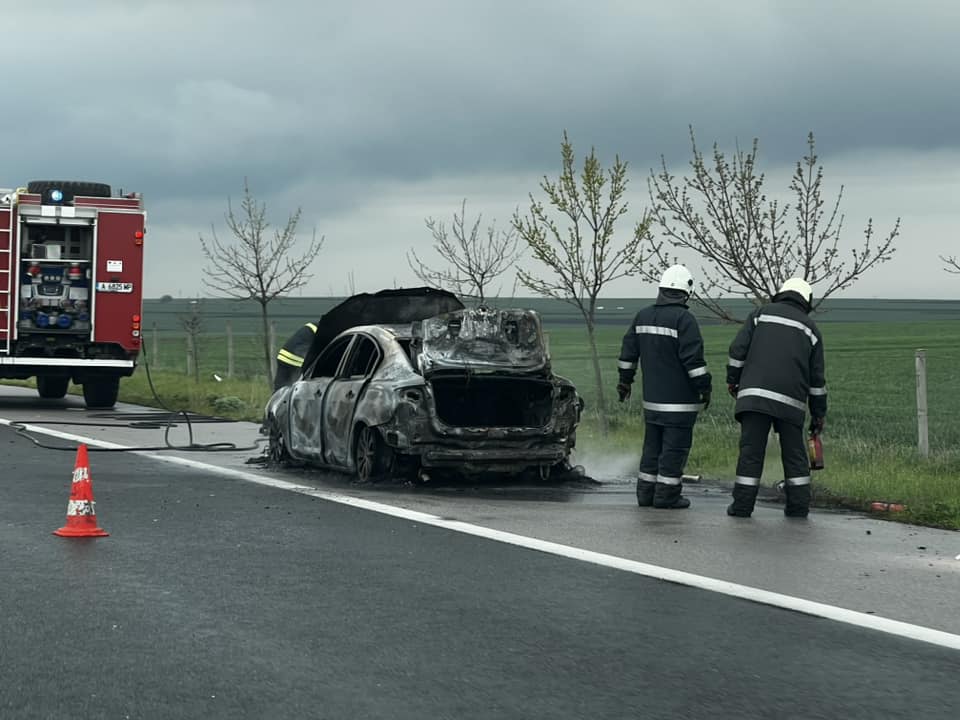 (ОБНОВЕНА в 13:17ч) По последни данни запалената кола е към този момент изгасена от екип огнеборци.