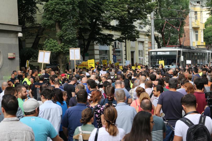 © БГНЕС Двата митинга влязоха в словесни нападки и се стигна до обсада на трамвайната линия. Районът се охранява от полиция.