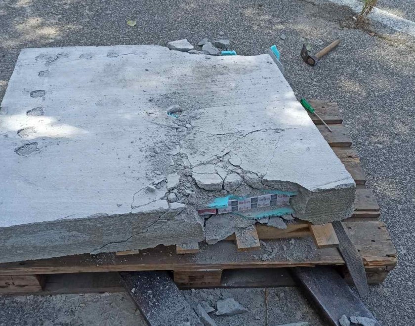 Митничари откриха контрабандни цигари, отлети в бетонна плоча