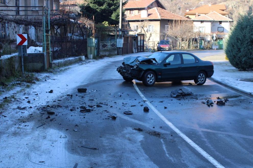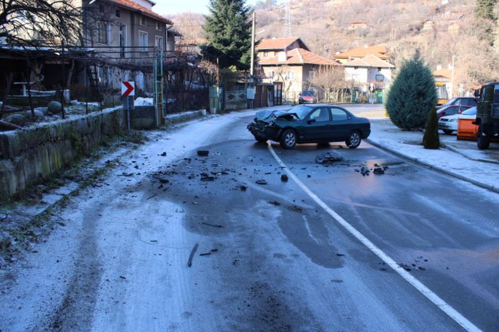 БГНЕС Катастрофата е станала на заледен пътен сектор. Пътник от единия автомобил е превозен до благоевградско лечебно заведение за оказване на здравна помощ.