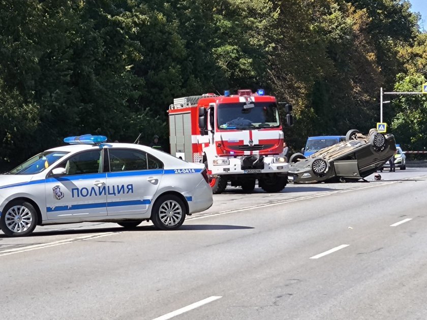 При злополуката автомобилът се е обърнал по таван. По първична информация моторът се е забил в колата.