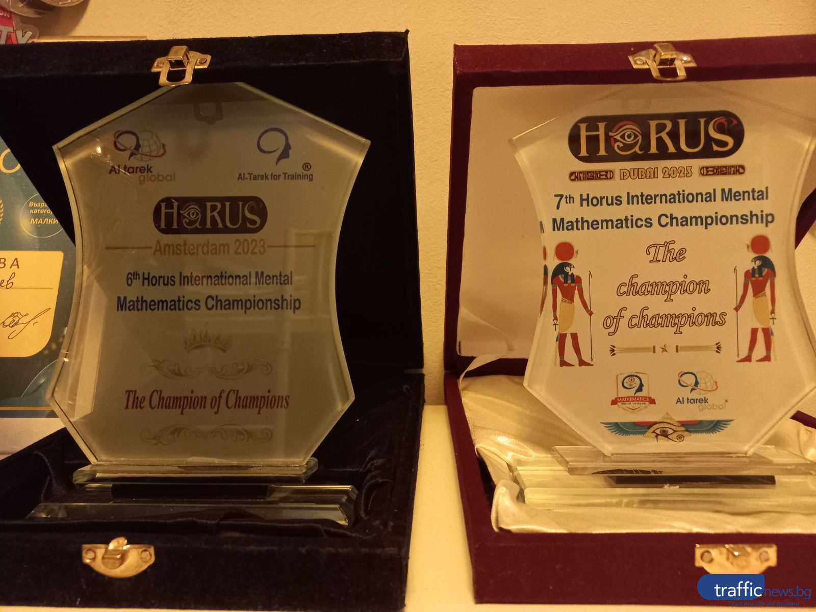 Двама дребни пловдивчани показаха почтено страната ни в Дубай. Братчетата Кристиан и Александър са завоювали необикновен триумф на Международната Олимпиада по ментална аритметика „ Horus 7 “, която се организира при започване на ноември. В надпреварата те надделели с математическите си умения над 180 деца от 10 страни, в това число ОАЕ, Египет, Йемен, Саудитска арабия, Алжир, Нидерландия, Румъния, Армения и Ливан.