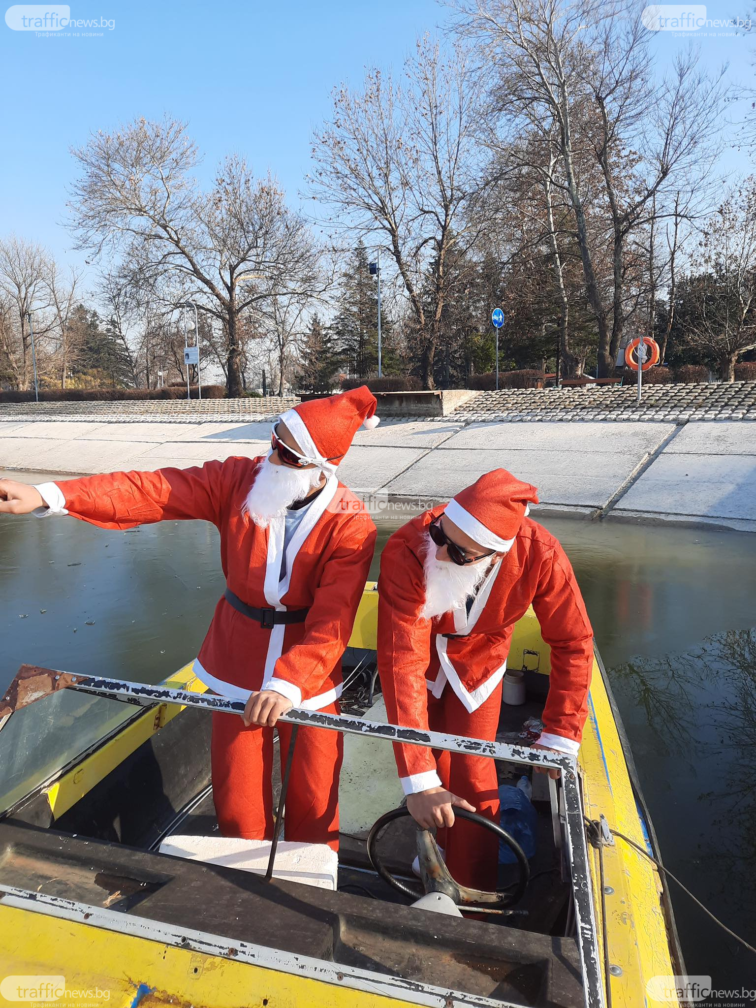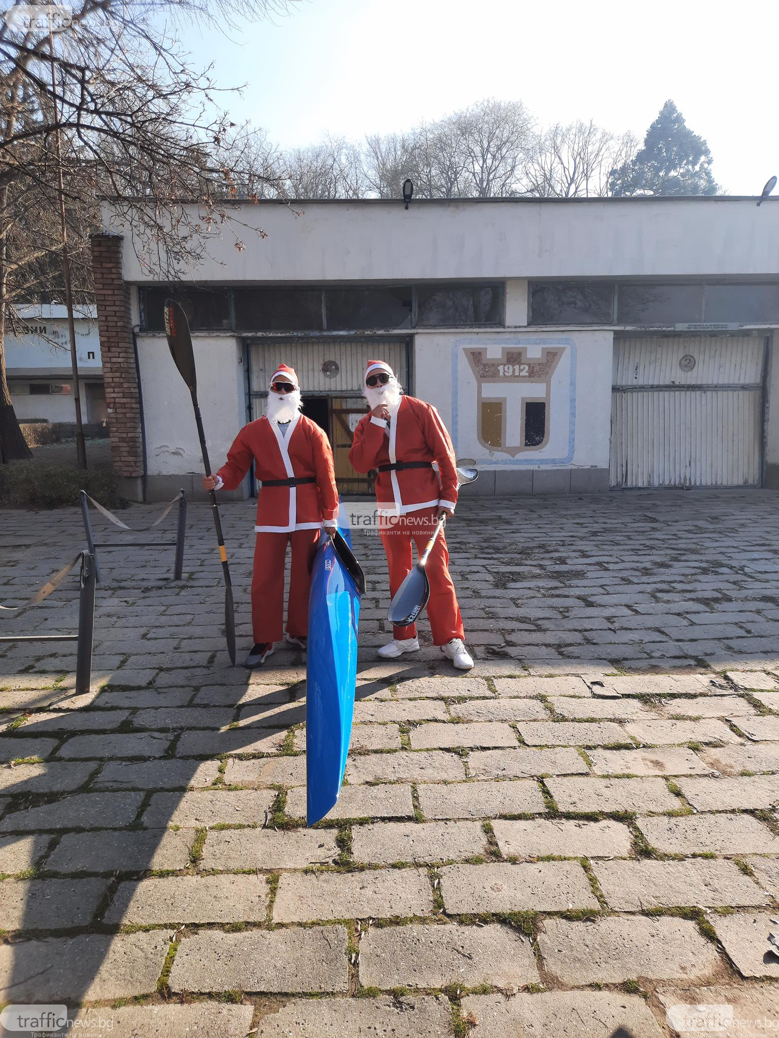 Двама малко по-различни Дядо Коледа радват пловдивчани на гребния канал точно на най-светлия християнски празник.