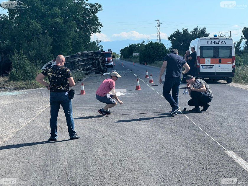Продължава огледът на мястото на злополуката. Движението по пътя Пловдив- Карлово към момента не е възобновено. Полиция отбива потока през Ръжево Конаре - Конаре и Черноземен.