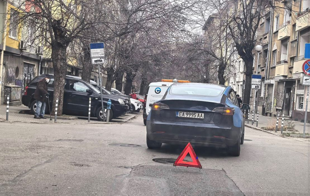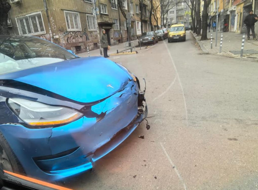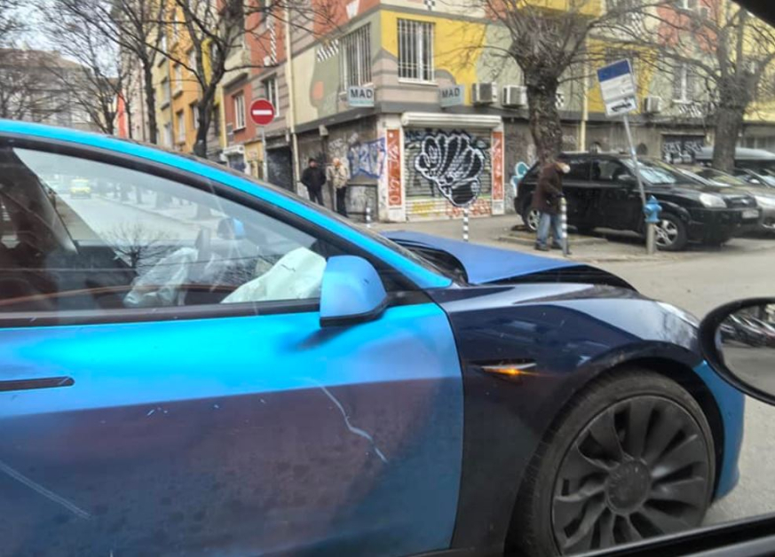 Сблъскали са се " Тесла " и " Мини Купър " и двете возила са с номера " ЕА ", който е предопределен за еко машините.