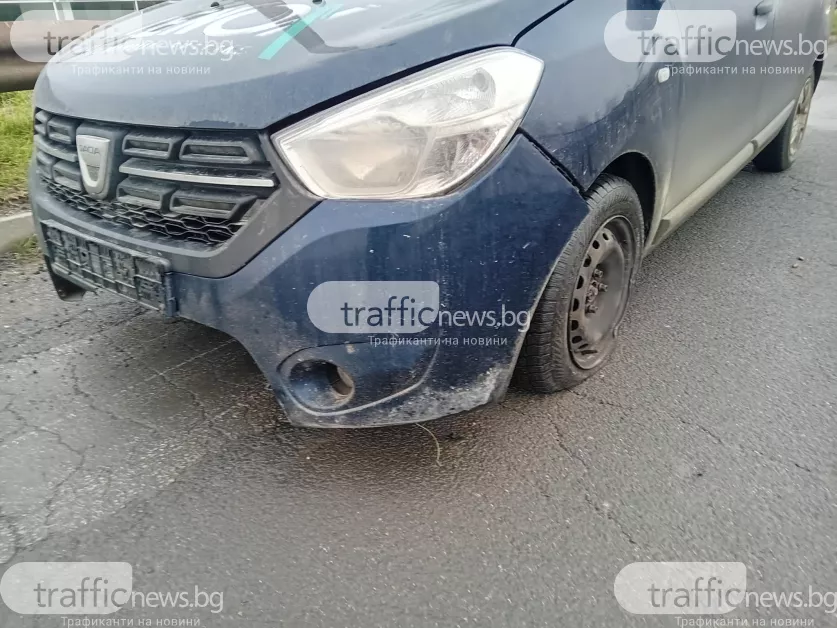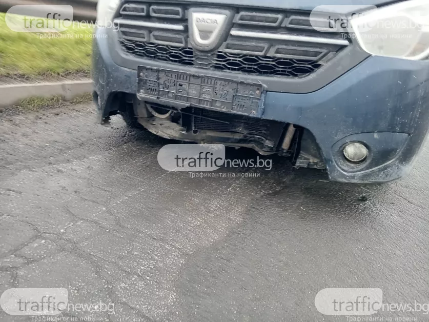Любопитното е, че втората кола – „ Дачия “, е минала по безусловно същия маршрут през островчето и мантинелата. И по нея има тежки материални вреди, в това число по предната част и гумите.