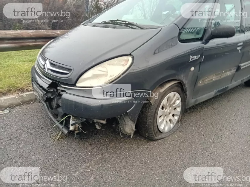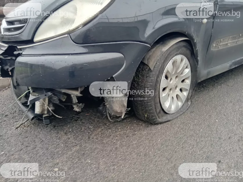 Първият автомобил – „ Ситроен “, е със съществени вреди. От удара са се отворили въздушните възглавници, предната ризница е паднала на пътя, а регистрационният номер е откъснат. Гумите на колата са разрязани, а предницата е мощно деформирана.