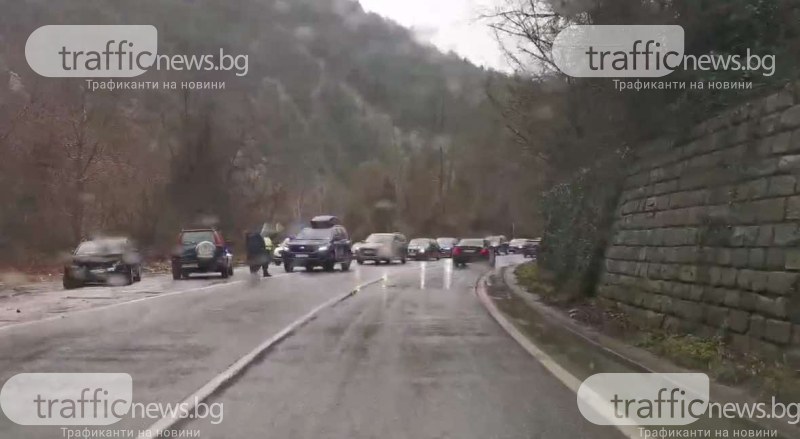 На място има екип на полицията, която да контролира придвижването. От едната страна се е образувало запушване.