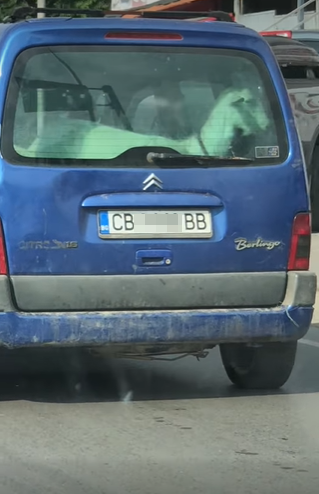 Авторът на фрагментите означи, че не всеки ден може да се види сходно нещо - кози да се возят в автомобил.