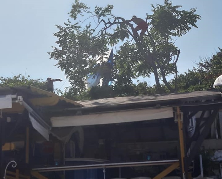 Малко преди прибирането на оборудването зародил проблем на лодката. Така девойките „ прелетели “ над пясъка и се спрели в клоните на високо дърво. Само след секунди те паднали на покрива на заведение „ Елвис “, над което било дървото.