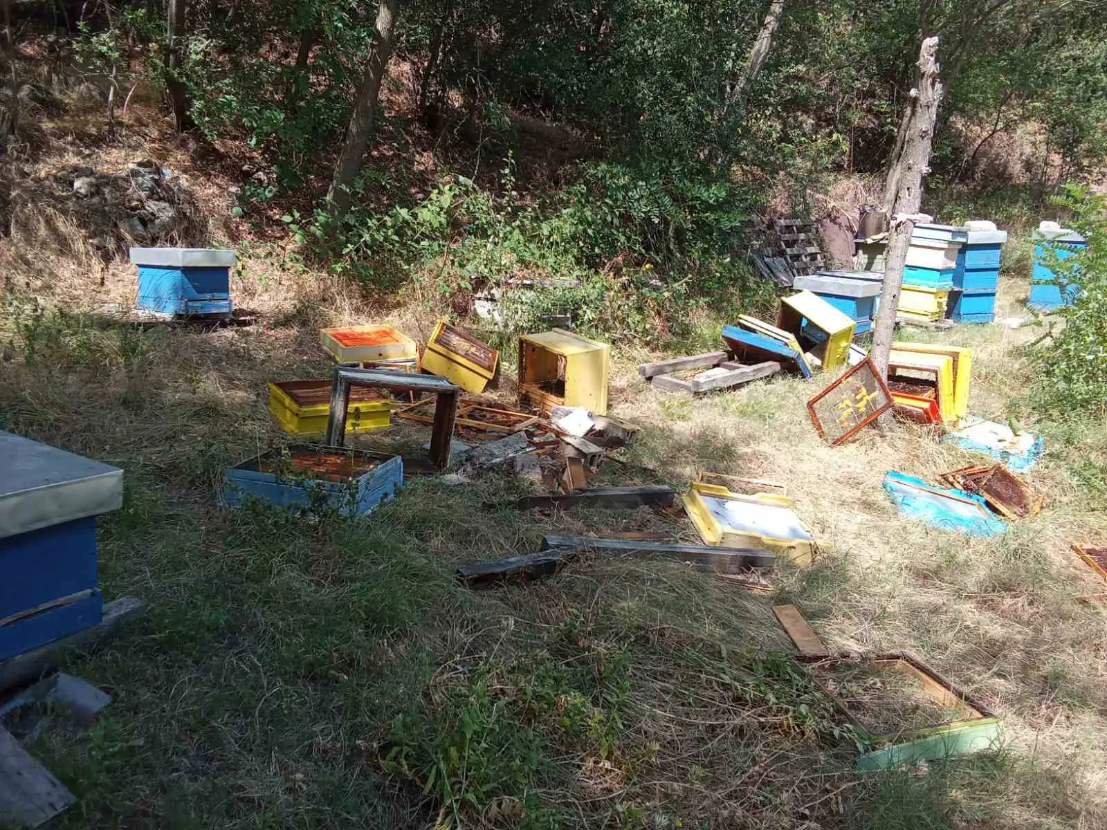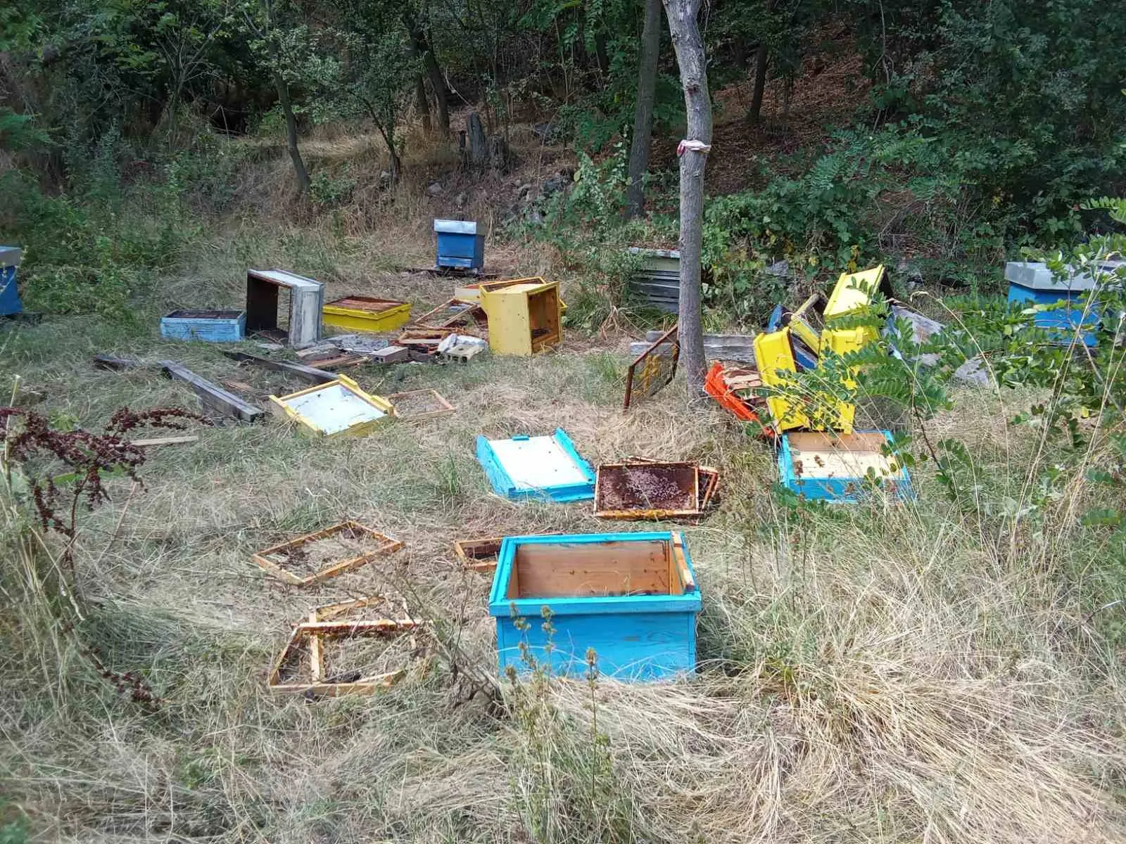 Две палави мечета нападнаха и опостушиха пчелини в местността " Трифончето ".