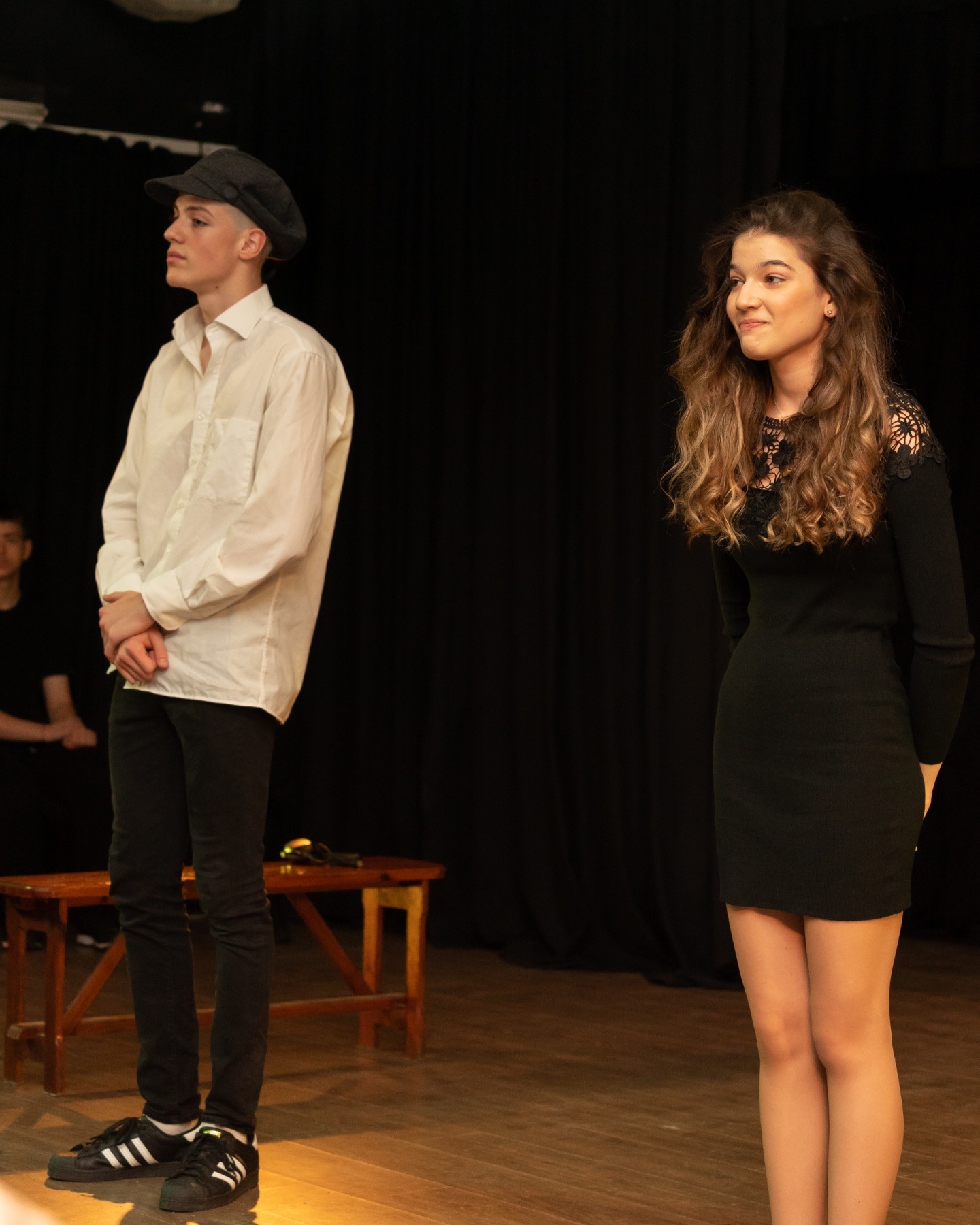 Само за седмица, младите артисти Белослава, Йордан, и Стилиян от 11 клас, съумяха да се възстановят превъплъщението си в героите на Пинтър, в пиесата „ Гара Виктория “, жанрово избрана като неуместна трагикомедия.