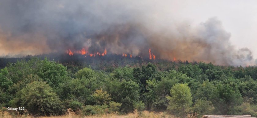 Две верижни машини на Южноцентрално държавно предприятие-Смолян работят за изработката на просеки за ограничение на огромния пожар край Хисаря.