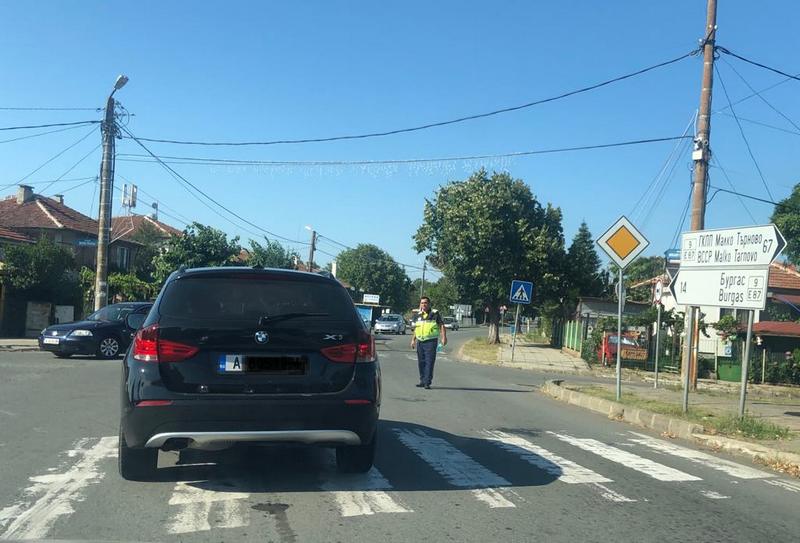 В центъра на Маринка служител на реда отбива колите към пътя за село Твърдица и ж.к. "Меден рудник "