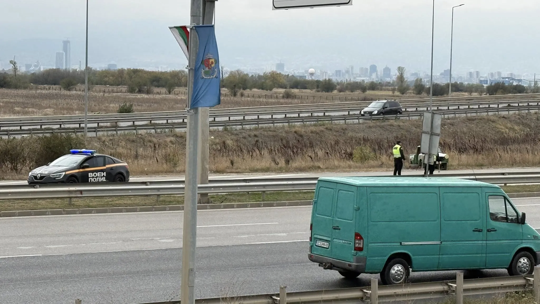Движението по бул. „ Ботевградско шосе “ в София бе краткотрайно спряно от екипи на Военна полиция в сектора преди слизане от Северната скоростна дъга.