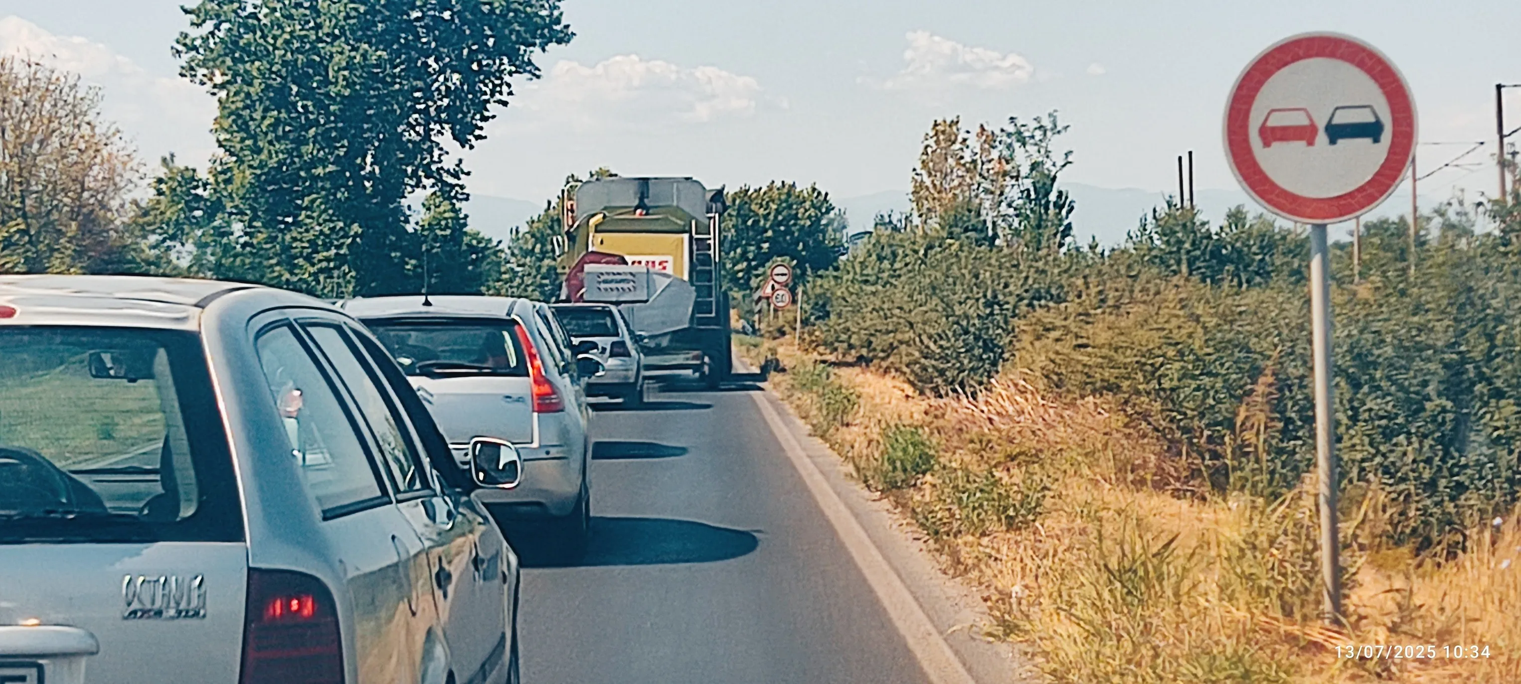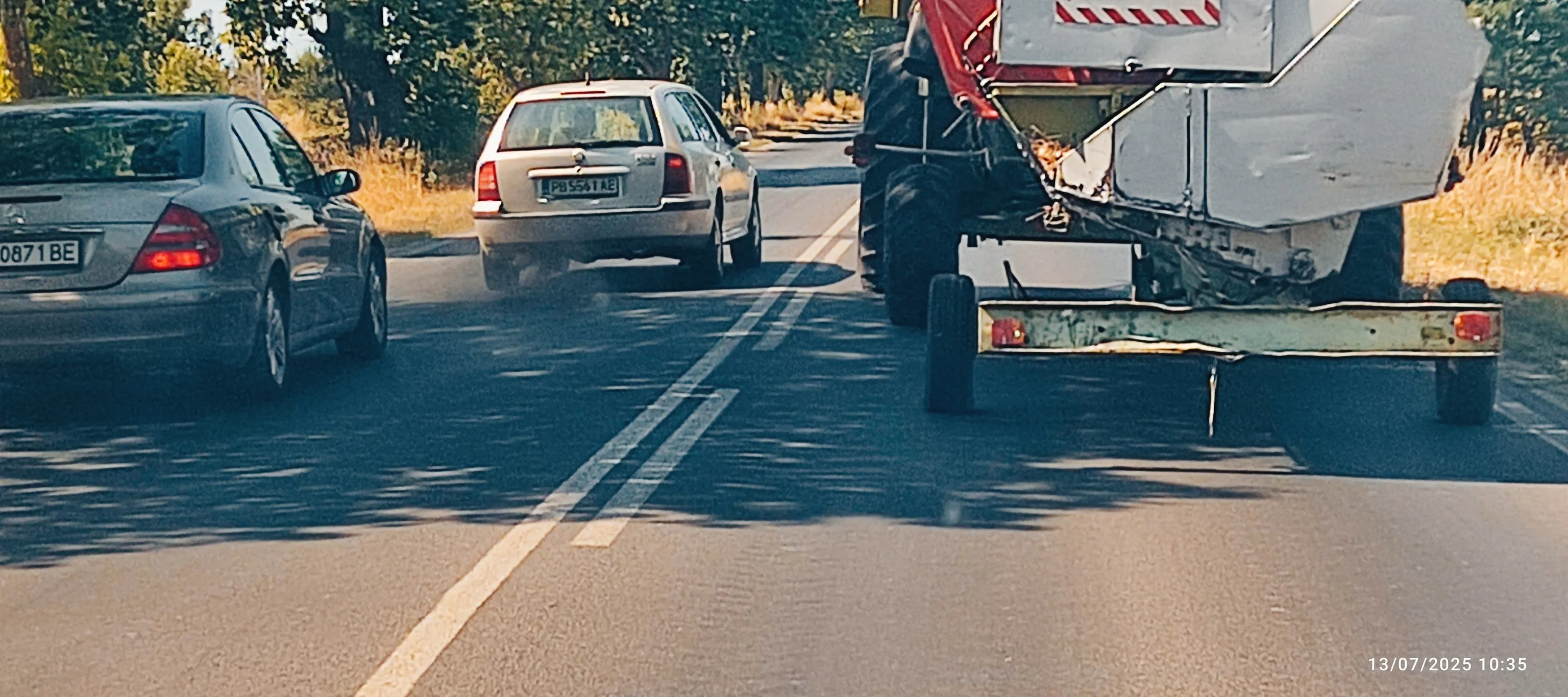 Колона от автомобили по пътя Долна Махала - Труд заради селскостопанска техника СНИМКИ