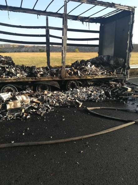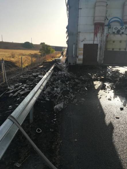 При придвижване в посока Бургас - София се възпламенява ремаркето на сръбски тир, претрупан със санитария. Водачът е съумял да откачи влекача, само че ремаркето е изгоряло. На място са изпратени два противопожарни автомобила.