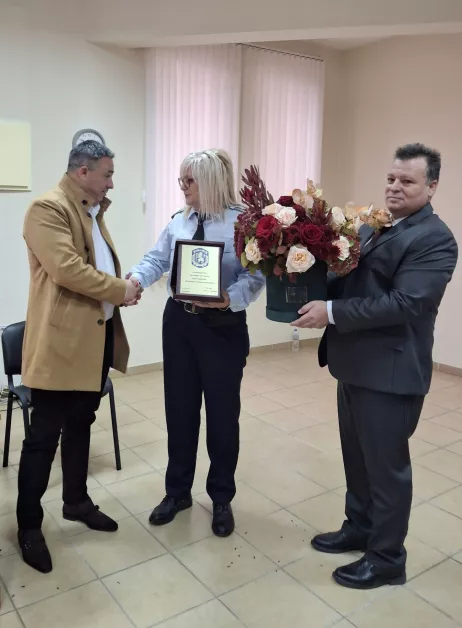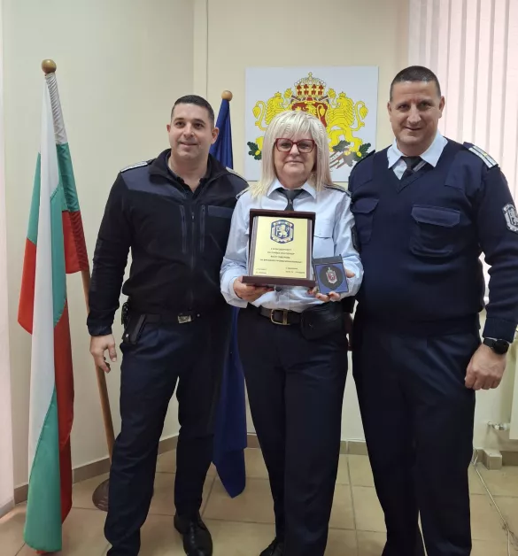 Заради добитото право за пенсиониране и безукорната й дългогодишна работа, през днешния ден заместник-директорът на ОДМВР – Пловдив комисар Пламен Иванов връчи на гл. контрольор Валя Тодорова оценката „ Почетен знак на Министерство на вътрешните работи – III степен “, присъдено от министъра на вътрешните работи.