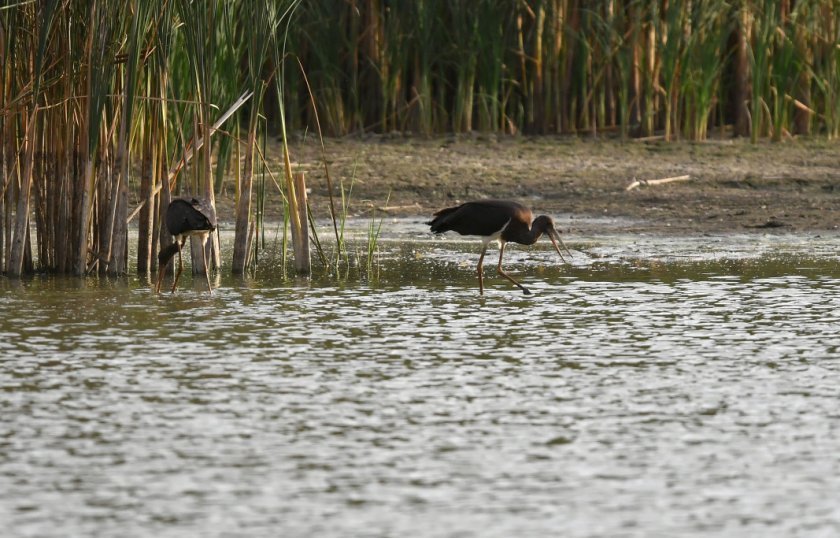 Двойка черни щъркели, които към момента не са мигрирали в южните страни за зимата, са дохвърчали в търсене на храна във водоем, покрай разградското село Малък Поровец, заяви Българска телеграфна агенция.