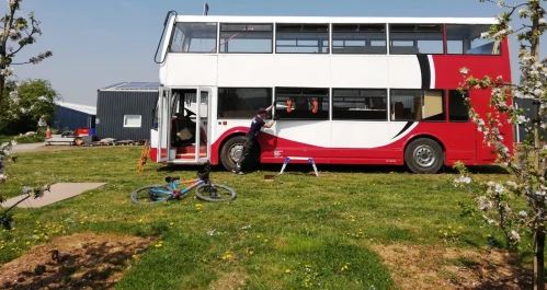 Днес те още живеят в кемпер, до двуетажния си автобус, само че скоро се надяват да тръгнат на път. Те ще бъдат съпроводени от кучето Мая, което към този момент се усеща като вкъщи на борда.
