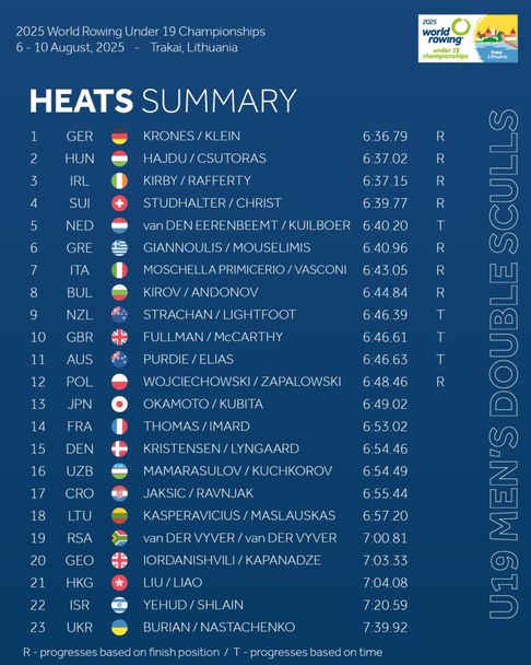 Утре, 8 август, Александър Киров и Валентин Андонов ще започват в полуфинал №2 в кулоар №5. Съперници на България ще са лодките на Нова Зеландия, Италия, Ирландия Унгария и Англия. Първите 3 в двата полуфинала ще ес класират за Финал А.