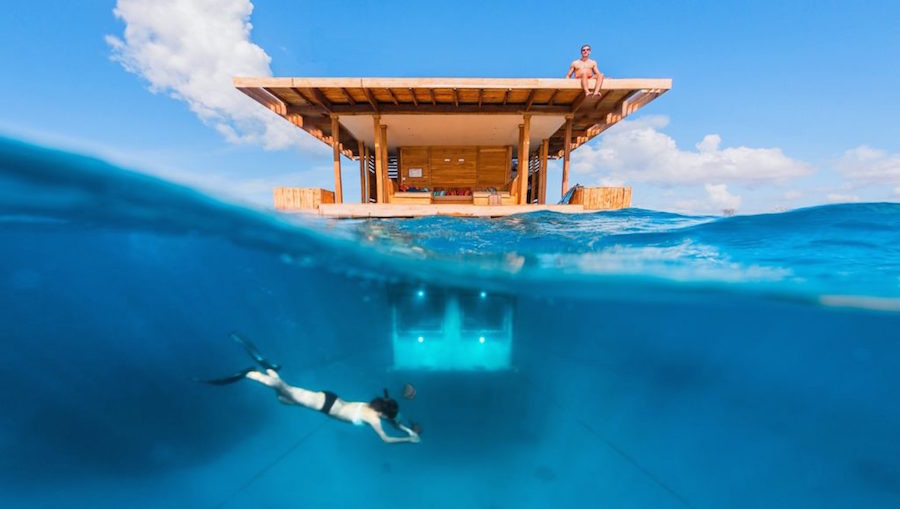 Двойна стая и цена от 1500 $ на нощ. Толкова костват трите равнища на най-невероятното синьо прекарване. Тази впечатляваща плаваща къщурка по шведски дизайн се намира в сърцето на Индийския океан на танзанийския остров Pemba. Великолепният Manta Resort е известен с нетрадиционните си стаи посред кристалната вода. Тази чудна къща е раят, който ви обезпечава легло под звездите и чудно съзерцаване на Млечния път, прекарване на ръба на вълните и най-вълнуващото – сънища в обятията на приказно красивия свят на океана.