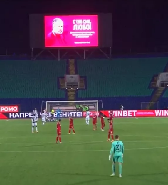 На светлиното табло на националния стадион също имаше обръщение в поддръжка на Любо Пенев.