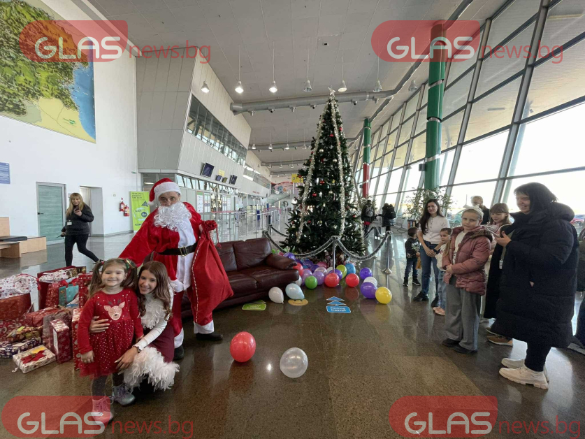 Дядо Коледа зарадва десетки деца, откакто кацна със аероплан „ Боинг “ на летище Пловдив.