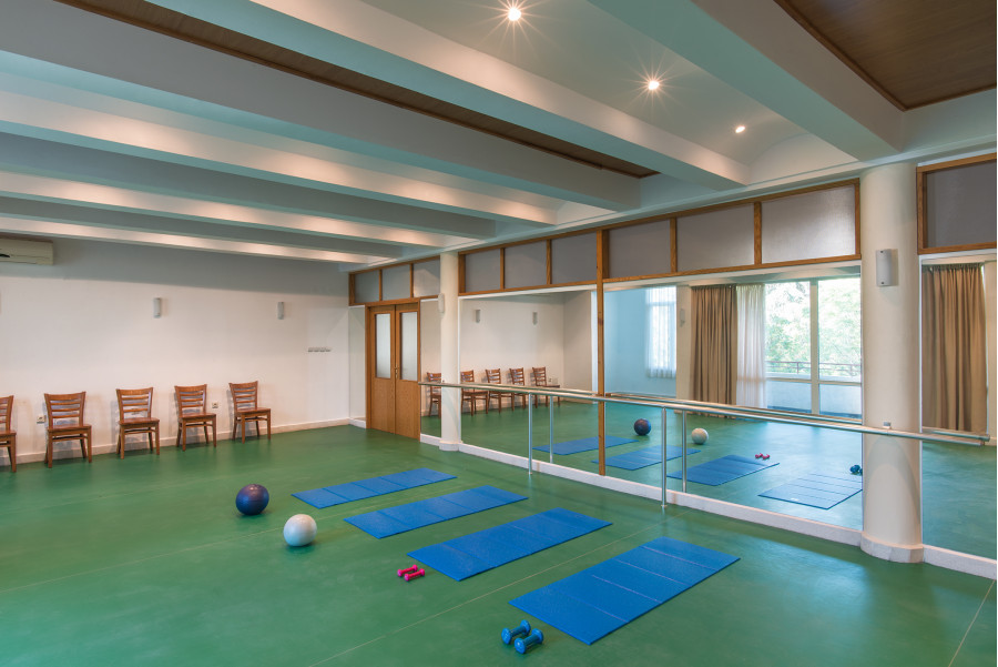 В особено обособената зала за гимнастика се организират групови и самостоятелни лечения с рехабилитатор. На разположение са няколко уреда, които пациентите могат да употребяват свободно, с цел да поддържат своя тонус.