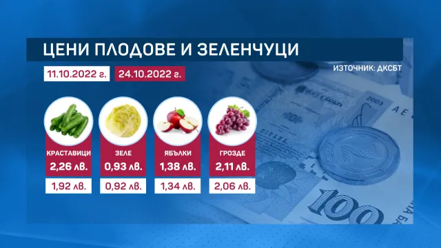 От плодовете и зеленчуците нарастване има при зелето, ябълките и гроздето.