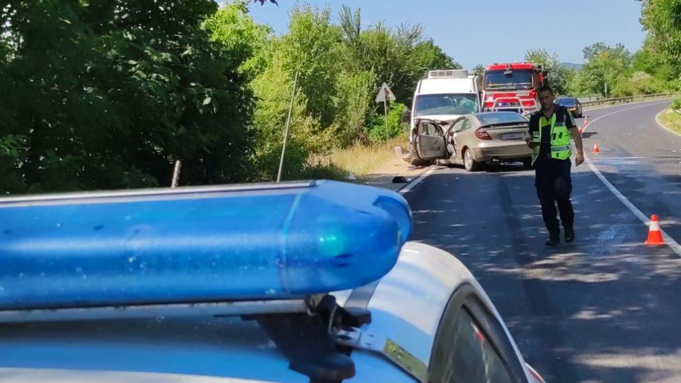 Лек автомобил " Мерцедес " се е блъснал челно в микробус при разклона за Павел баня.