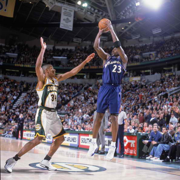 Просто тъй като 40-годишният Майкъл Джордан, този път с екипа на Вашингтон Уизардс, продължава да тероризира коша с неостаряващата си и блестяща игра от приблизително. Въздушния бележи по 20.0 точки на мач през сезона (1,640 общо), като води всички играчи по най-хубав % от приблизително разстояние - 43.3% маркирани стрелби или 457 коша от 1056 опита. Това надминава следните достижения за акцията: