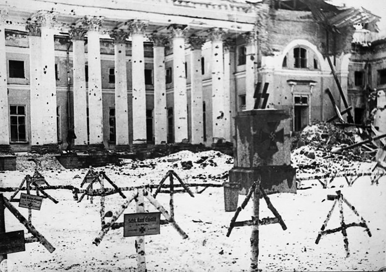 По време на втората международна война в Царско село се разполагат немските войски, които блокират Ленинград. Царските резиденции са мощно разрушени, в залите на дворците се обитава боен щаб. Точно пред Александровския замък е устроено гробище за убитите немци.