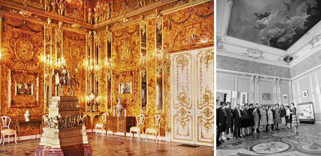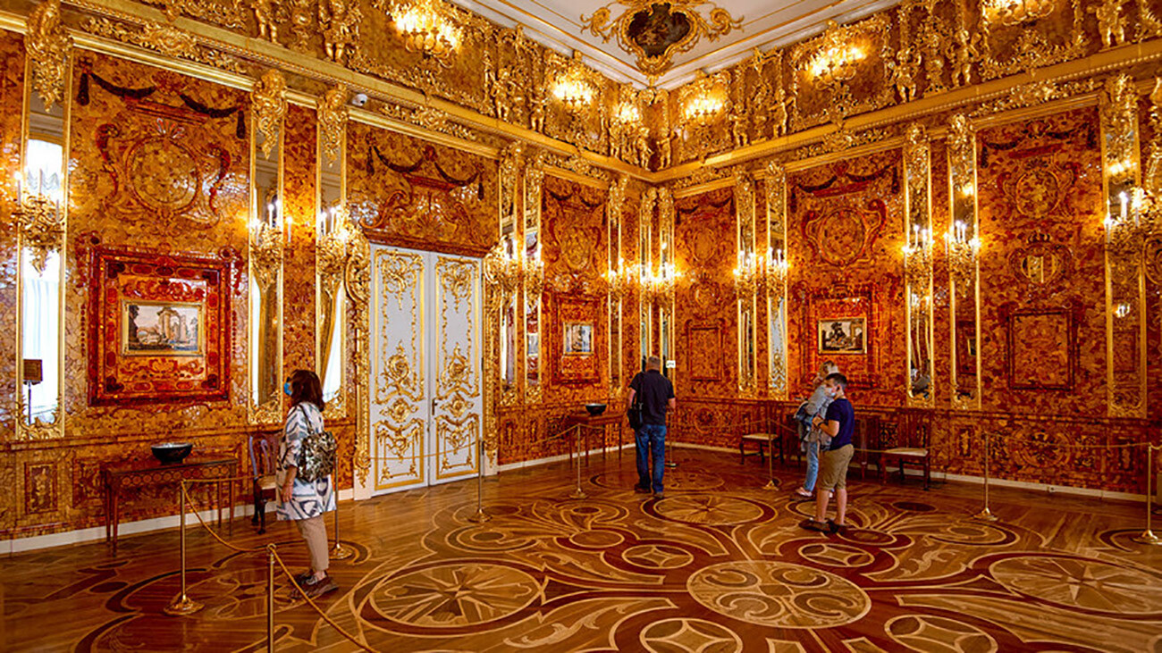 Андрей Зеест; Николай Науменков/ТАСС Една от най-загадъчните истории, свързани с Царско село, е популярната стая в Екатерининския замък, инкрустирана напълно с кехлибар. Отстъпващите немци изцяло демонтират кехлибара от стените и го изнасят в Германия. Той е безследно изгубен.