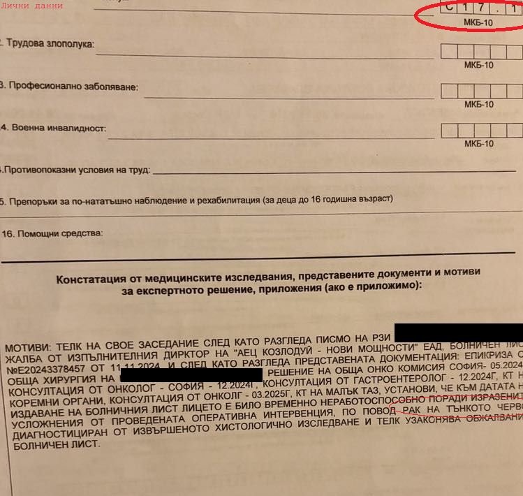 Това се случва на 12 март т.г. - 2 седмици след фрапиращото писмо на Петьо Иванов, в което твърди, че дамата можело да страда от болест на Крон, а не от онкозаболяване. Надали той е наясно, че и заболяването на Крон, даже при леки затруднения, също предстои на оценка пред ТЕЛК и най-често процентите неработоспособност при тази също тежка диагноза, варират сред 71 и 100.