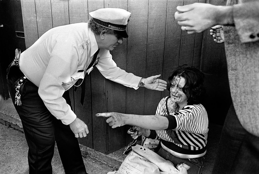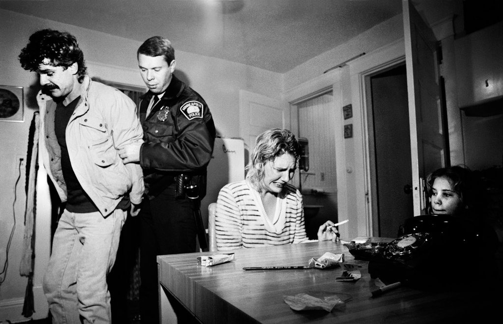 (Karen cried as her boyfriend was arrested. Her daughter called 911 after she heard when her mother was hit in the head. Minneapolis, 1988)