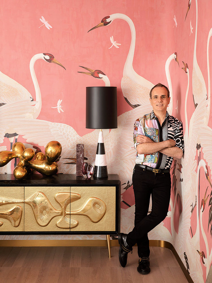 „ Когато бях млад – споделя Грег, – интериорите, които виждах по малкия екран, отразяваха един вълнуващ свят, който в последна сметка щеше да ме насочи към кариерата ми на дизайнер. Особено усещане ми беше направил домът на злодейката от сериала „ Династия “, Алексис Карингтън. Белите стени с розови акценти, детайлите ар деко и неподражаемото холивудско лъчение изплуваха на напред във времето в съзнанието ми, когато започнах да планирам интериора на този мезонет с три спални в модерното предградие на Мелбърн – Турак.Собствениците, младо семейство, шефове на компания за продажба на първокласни часовници и бижута, желаеха да трансфорат своя напълно бял и минималистичен интериор в охолно обзаведен дом с чувство за великолепие. Розовите тоналности и златните акценти се появиха като предпочитание още в самото начало в диалозите ни, а те бяха значително въодушевени от интериора на личния ми дом в Сидни, който клиентите ми бяха видели. “Вижте синмки в ни.