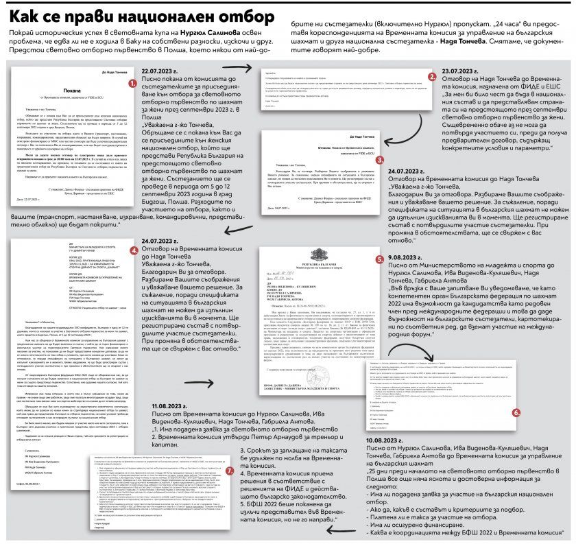 " 24 часа " популяризира кореспонденцията, която хвърля светлина върху договарянията сред така наречен " краткотрайна комисия " за ръководство на българския шахмат и друга от националните състезателки, подкрепящи БФШ 2022 - Надя Тончева.