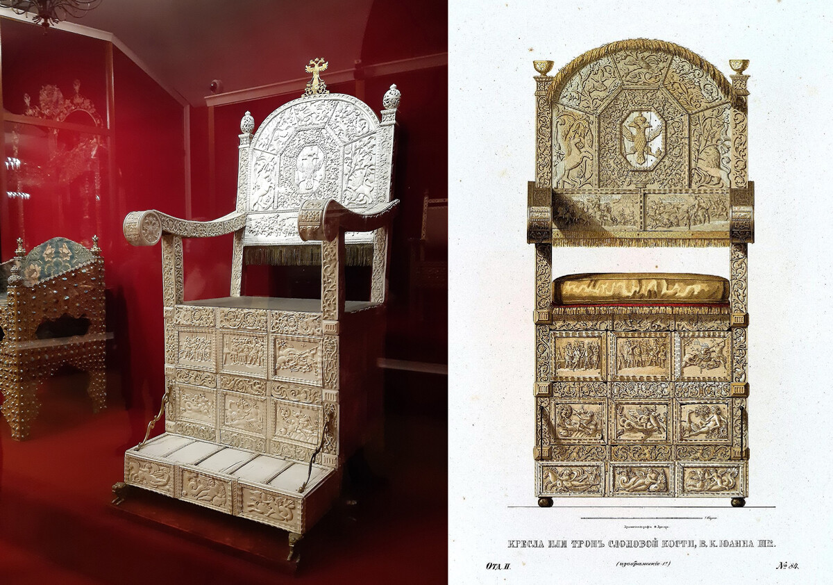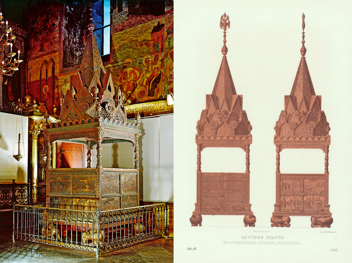 Най-известният и най-старият от оживелите е „ Тронът на Мономах “ в събора „ Успение Богородично “ на Московския Кремъл. Датира от 1551 година, поръчва го за себе си цар Иван Грозни. Според легендата първият подобен престол е изпратен в Русия от самия византийски император Константин Мономах.