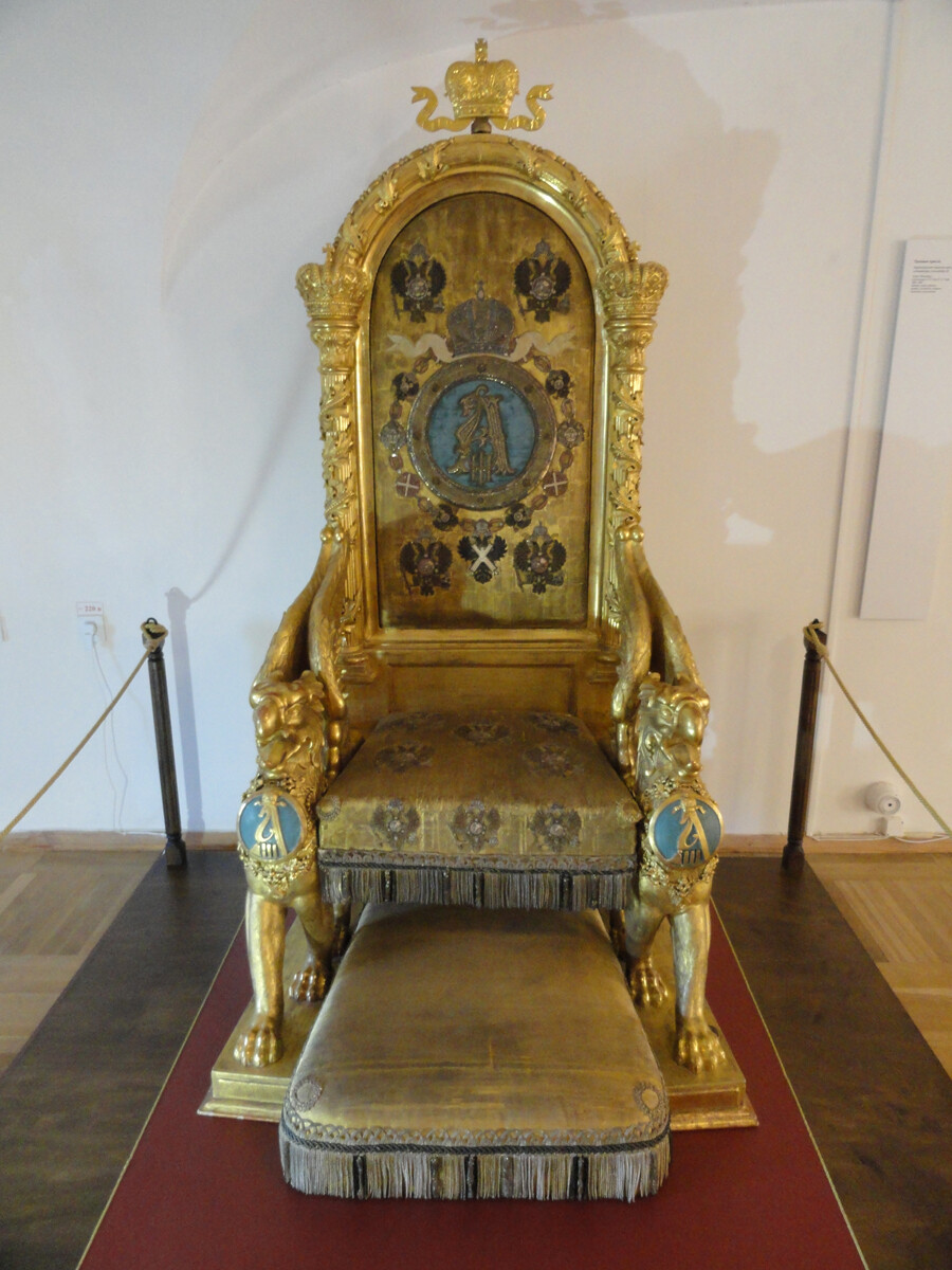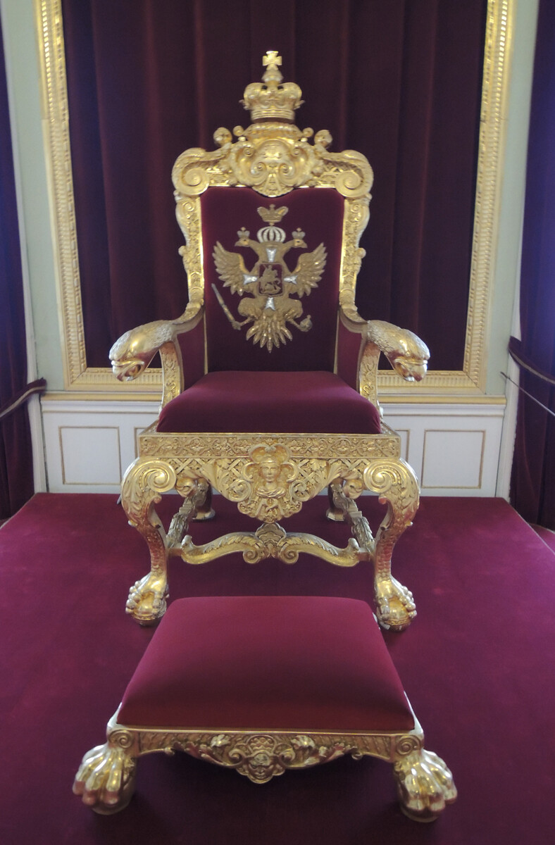 Императрица Елисавета Петровна обожава лукса и обилната декорация, тя е огромен фен на стиловете барок и рококо. Именно на нея принадлежи дъбовият тронен стол от 1742 година със златни резби и тапициран с кадифе.