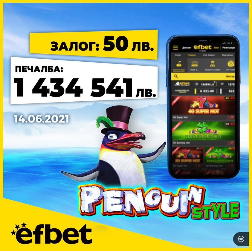 Интересен факт е, че единствено към месец и половина по-рано от efbet излиза и различен милионер, който печели към 1.4 милиона лв., играейки на предлагането „ Penguin Style” със залог от 50 лв. на завъртане.