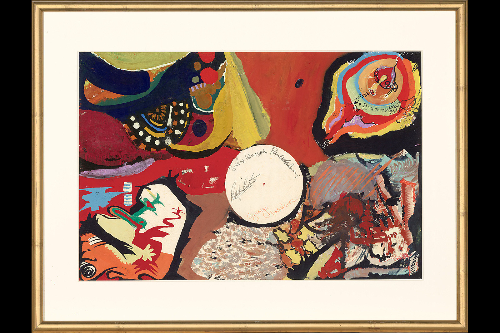 Почти шест десетилетия по-късно картината към този момент се продава, а върху нея са и четирите подписа на именитите британци. Те са сложени в средата на платното, където в оня миг в хотелската стая е била сложена лампата.