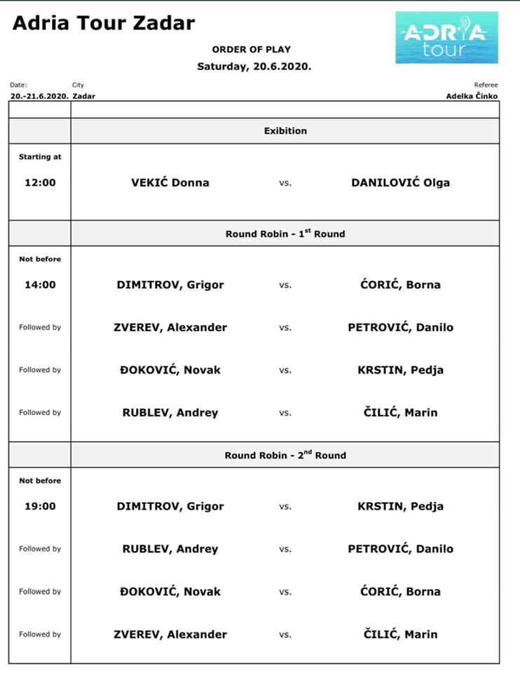 Единственият българин в тенис елита Григор Димитров открива програмата на съботния ден на демонстративния шампионат Adria Tour в хърватския град Задар. Съперник на първата ни ракета е представителят на домакините Борна Чорич в 15:00 часа през днешния ден.