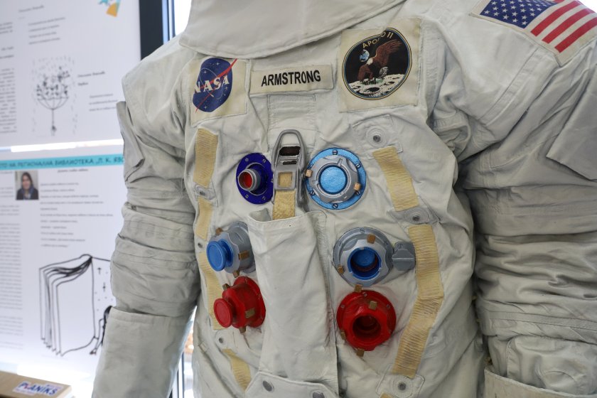 Една от истинските 15 реплики на скафандъра на Нийл Армстронг, с който той стъпва на Луната, е изложена в Регионална библиотека „ Пейо К. Яворов ” в Бургас.