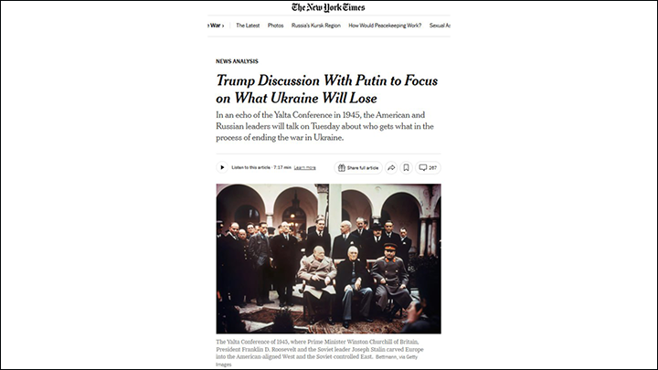 Ню Йорк Таймс. „ Дискусията на Тръмп с Путин ще се концентрира върху това какво ще загуби Украйна.