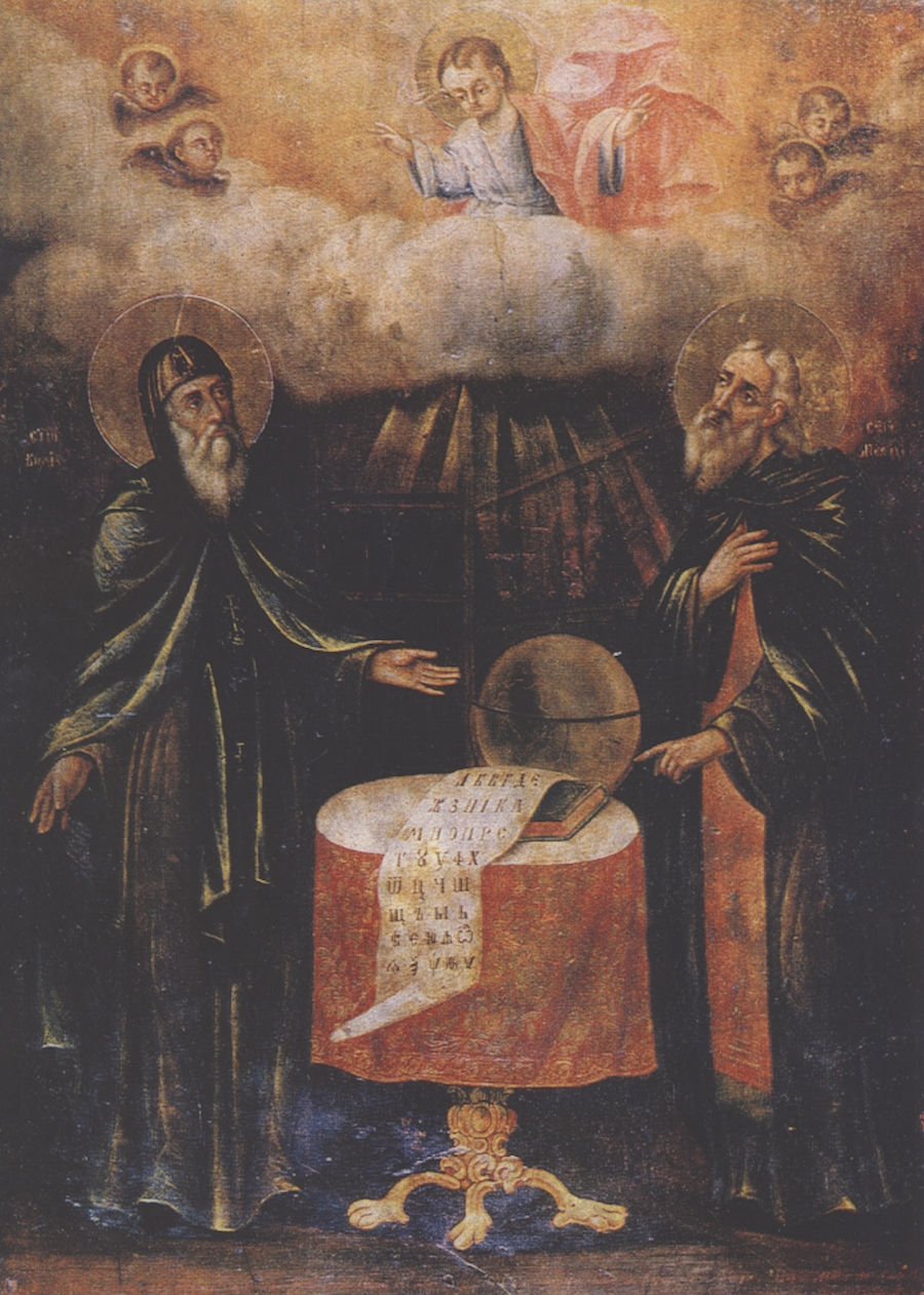 („ Св. Кирил и Методий ”, икона от Станислав Доспевски, 1857, Институт за литература при БАН)