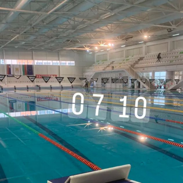Тази заран той си пусна фотография от басейн с часа на първата му подготовка за деня - 7:10.