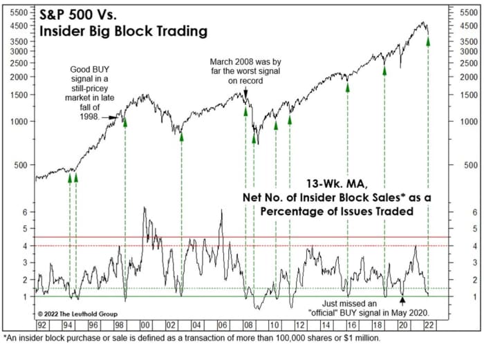 Тод Лоуенщайн, пълководец на капитала в The Private Bank в Union Bank, не е сюрпризиран, че вътрешните хора купуват. „ В момента се появява някаква добра стойност “, споделя той. „ Можете да вземете качествени компании на рационална цена. “В долари съотношението на покупката към продажбата се е утроило до 0,29. Това се съпоставя със приблизително 0,1 от 2016 година Това съответствие също доближи 0,29 в кулминационната точка на продажбите през декември 2018 година Три месеца по-късно Nasdaq се увеличи с над 20%.Съотношението на броя на вътрешните консуматори, които купуват по отношение на продаващите, се е нараснало повече от два пъти до 1,08. Това е стабилен сигнал за покупка за мен, тъй като това съответствие е приблизително 0,39 от 2016 година Единственият различен път, когато пробива 1 от 2016 година, беше по време на пандемичната суматоха през март 2020 година, когато се увеличи до 2,2.В Vickers Insider Weekly това е същата история. „ Корпоративните вътрешни лица реагираха с възходящ оптимизъм, изразявайки убеденост, която исторически е предшествала забележителни растежи “, се споделя в записка, оповестена от Vickers в понеделник.Едноседмичното съответствие продажби/купува на Vickers неотдавна падна до 0,91. (По-ниско значи повече оптимизъм.) Това бележи „ доста необичаен интервал с повече транзакции за покупки от вътрешна страна, в сравнение с покупко-продажби за продажби “, споделя Викърс. Последният път, когато това се случи, беше март 2020 година Три месеца по-късно Dow Jones Industrial Average се увеличи с 35%, а година по-късно - със 70%. Това съответствие също падна под 1 през декември 2018 година Тогава Dow се увеличи с 14% за три месеца.И най-после, продажбите на огромни блокове внезапно понижават. Главният капиталов шеф на Leuthold Group Дъг Рамзи избира да реши вътрешните лица посредством премерване на огромни транзакции от 100 000 акции или 1 милион $. Той изважда покупките от продажбите, с цел да откри „ чисти продажби “ като % от излъчванията, търгувани на NYSE. Това падна под 1% към 20 май, повишавайки тази мярка до „ оптимално възходящо “, споделя той.Трите акции, които инсайдерите обичатИма безусловно десетки атрактивни акции, които да обмислите, въз основа на възходящо пазаруване от вътрешна информация. Ето три от света на огромните капитали.Home DepotВътрешна покупка: Директор неотдавна закупи акции на стойност $431,000 при $288 за акция.Акциите на Home Depot, най-големият търговец на дребно за възстановяване на дома в света, са намалели с над 31% тази година. Това в действителност няма смисъл, тъй като продуктивността е страхотна, изключително за търговец на дребно. Резултатите от първото тримесечие потвърдиха това.„ Компанията усъвършенства приходите. Това усъвършенства облагите и увеличи насоките. Но те въпреки всичко бяха осъдени от пазара “, споделя Тенглер, която има търговеца на дребно от името на своите клиенти в Laffer Tengler Investment. „ Първото тримесечие нормално е постепенно и това бяха най-високите им тримесечни продажби в миналото. “Анализаторът от Morgan Stanley Симеон Гутман счита, че повишението на насоките е било консервативно.Един боязън е, че пазарът на жилища се забавя с повишаването на жилищните ипотеки. Но Тенглер твърди, че това в действителност не е негативно, защото хората са по-склонни да вършат усъвършенствания в дома, когато останат по-дълго в него.„ Като се има поради насъбраното търсене на работни места